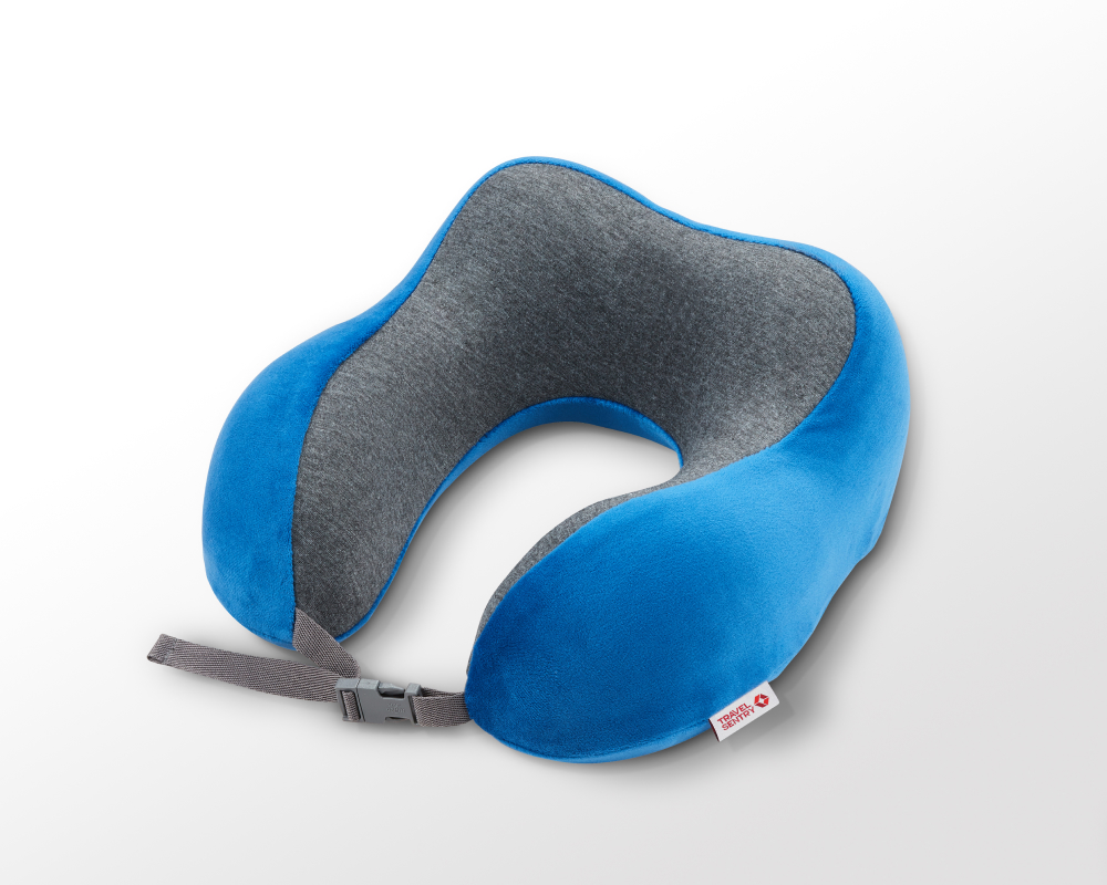 枕を首にかけ、ストラップをお好みの長さに調整して固定します。外す時はストラップ上下を押して外します。保管する際は、枕を巻いてたたんで付属のポーチに入れてください。